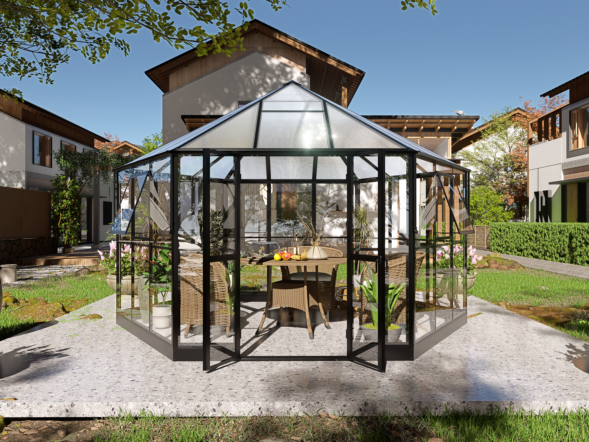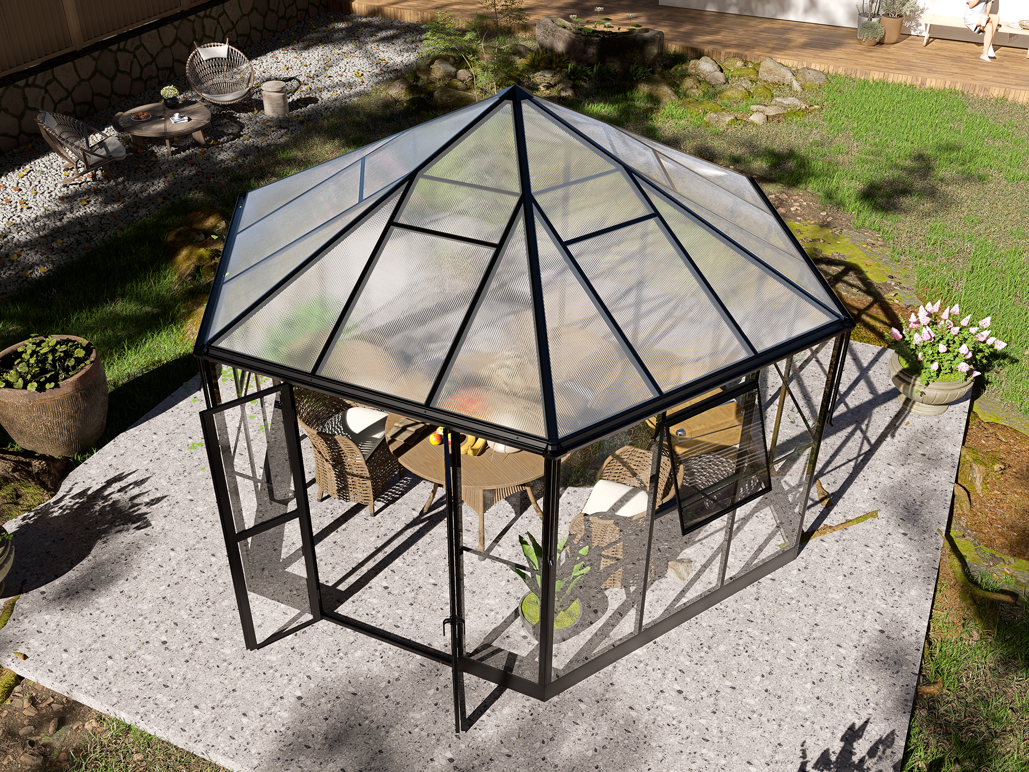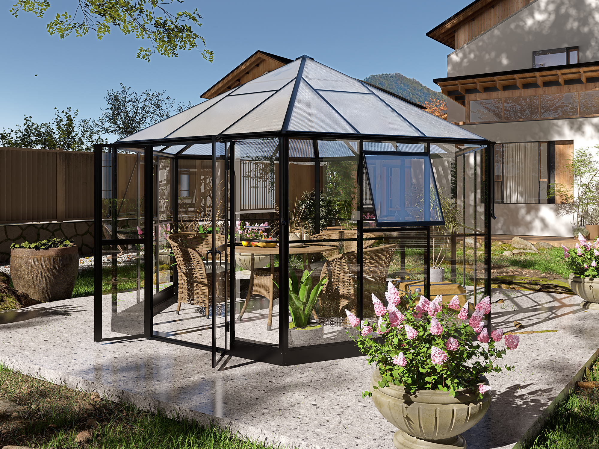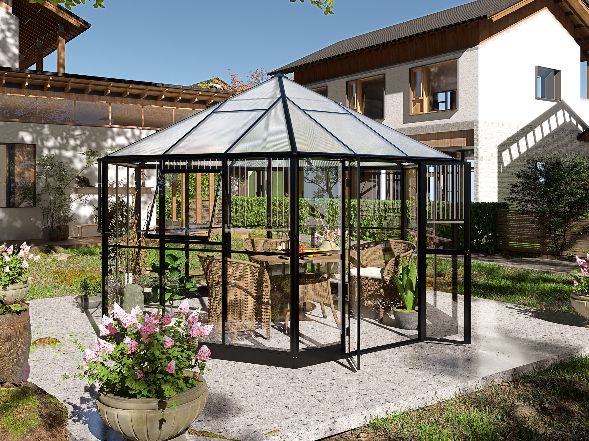 - Gewächshaus, Gartenzimmer und Pavillon in einem Produkt