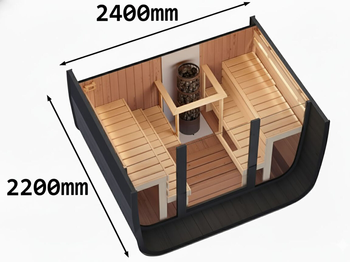 Fjordholz Fass-Sauna Modell Cubus-3 Black Edition
