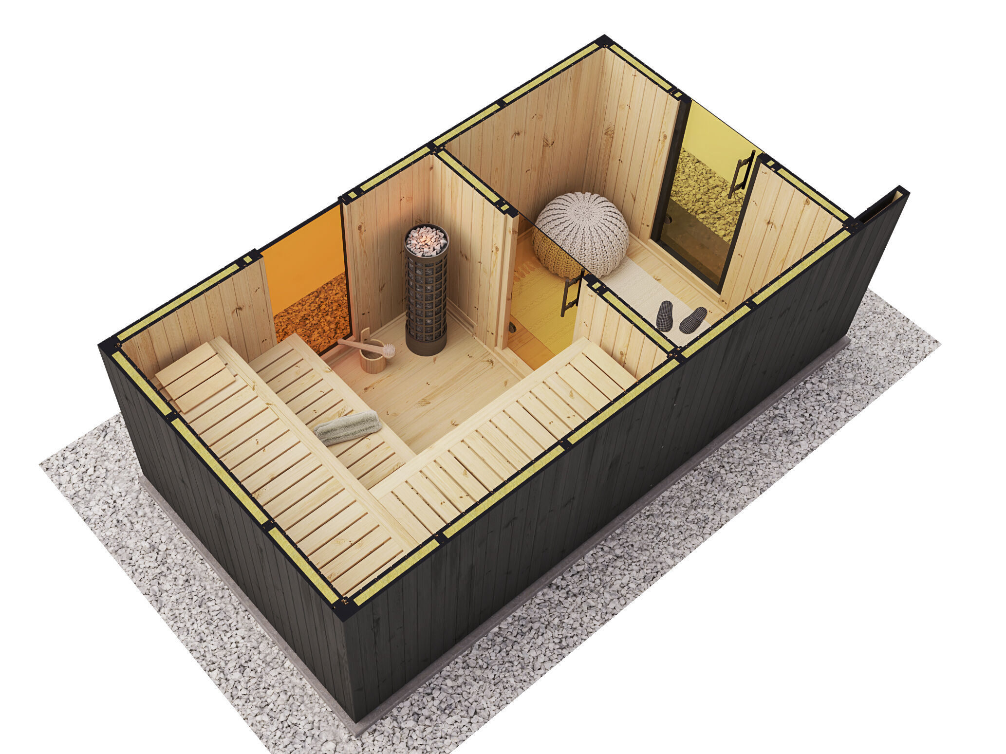 Fjordholz Design Saunahaus Modell Emine 2-Raum