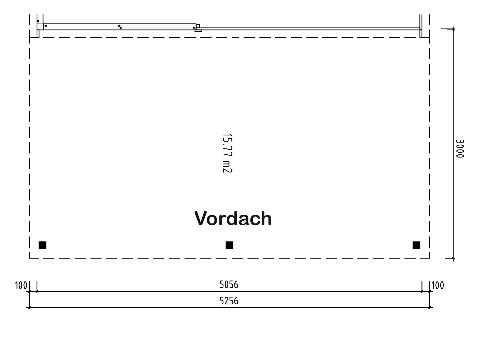 • stabiles 300 cm Vordach mit zwei Stützen