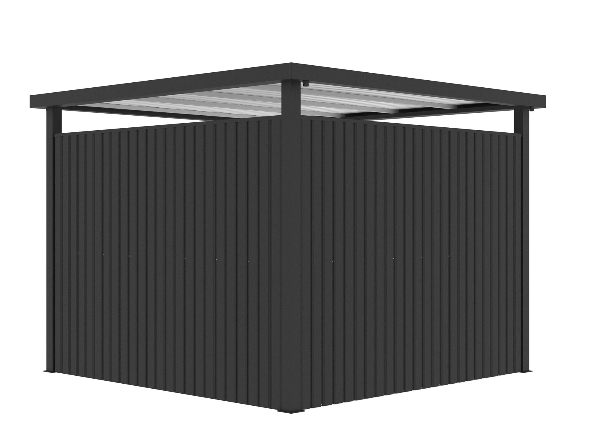Das freistehende Terrassendach Modell Nexus von StarLine Metall bietet einen optimalen Sonnen- und Regenschutz in einem eleganten, langlebigen Design. Das moderne Terrassendach besteht aus einer stabilen Aluminium Konstruktion mit einem extrem wetterbeständigen robusten verzikten Stahldach. Die großzügige Grundfläche von 8,6 m² bieten ausreichend Platz für einen gemütlichen Loungebereich für Ihre Gartenmöbel. Durch die moderne Farbgestaltung in der Farbe anthrazit und das moderne Flachdachdesign wird das Terrassendach Nexus zu einem echten Hingucker in Ihrem Garten. Im Sparset-1 sind 3 hochwertige Seitenwände aus Metall enthalten.
