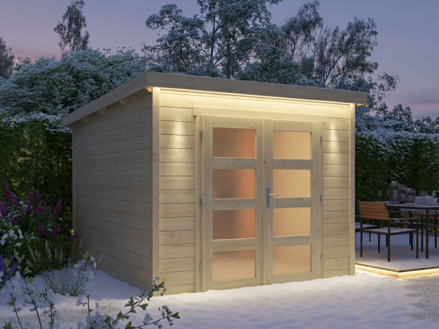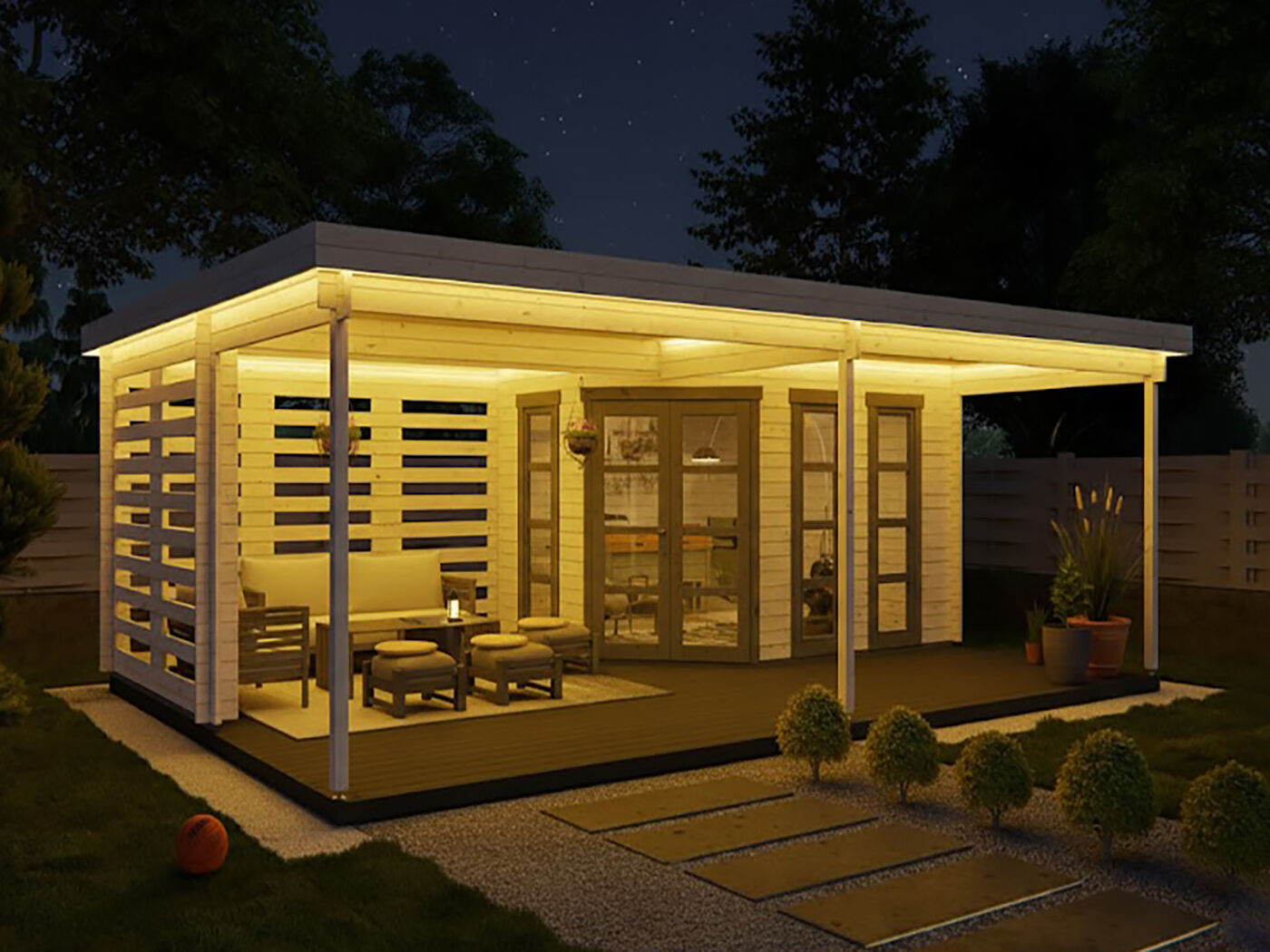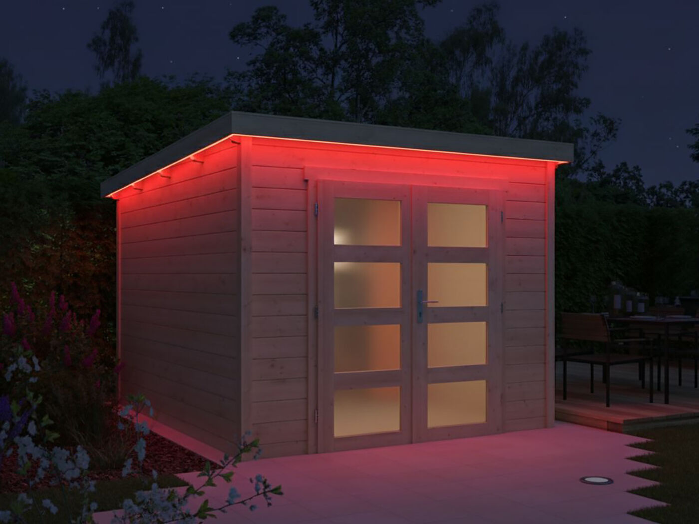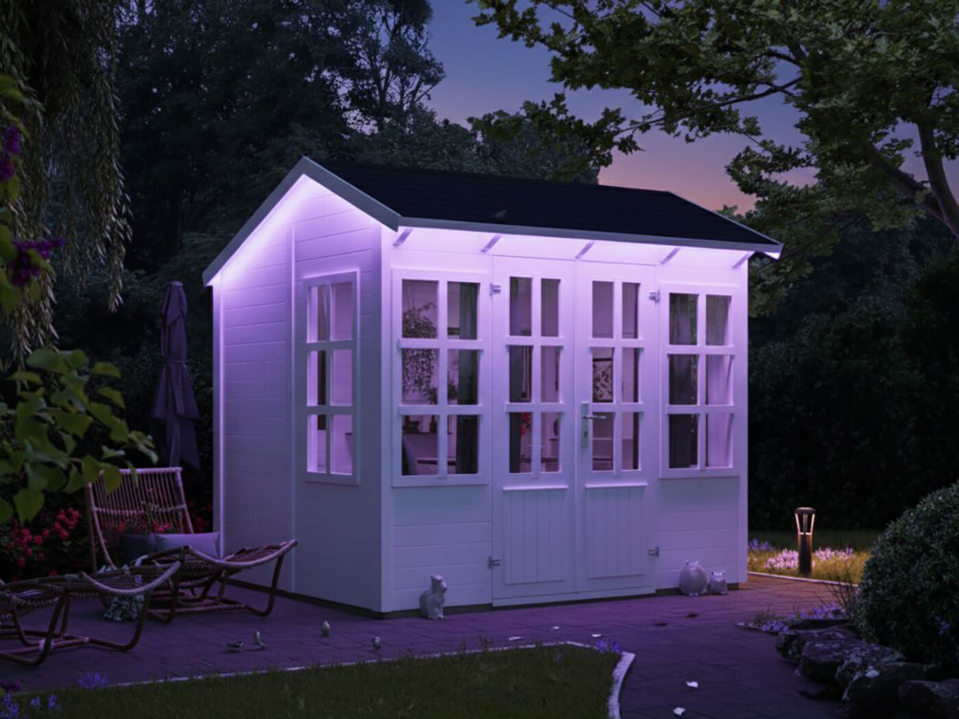 Ob gemütliches Lichtspiel im Innenraum oder effektvolle Außenbeleuchtung – mit dem Gartenhaus LED Kit schaffen Sie jederzeit das perfekte Ambiente.