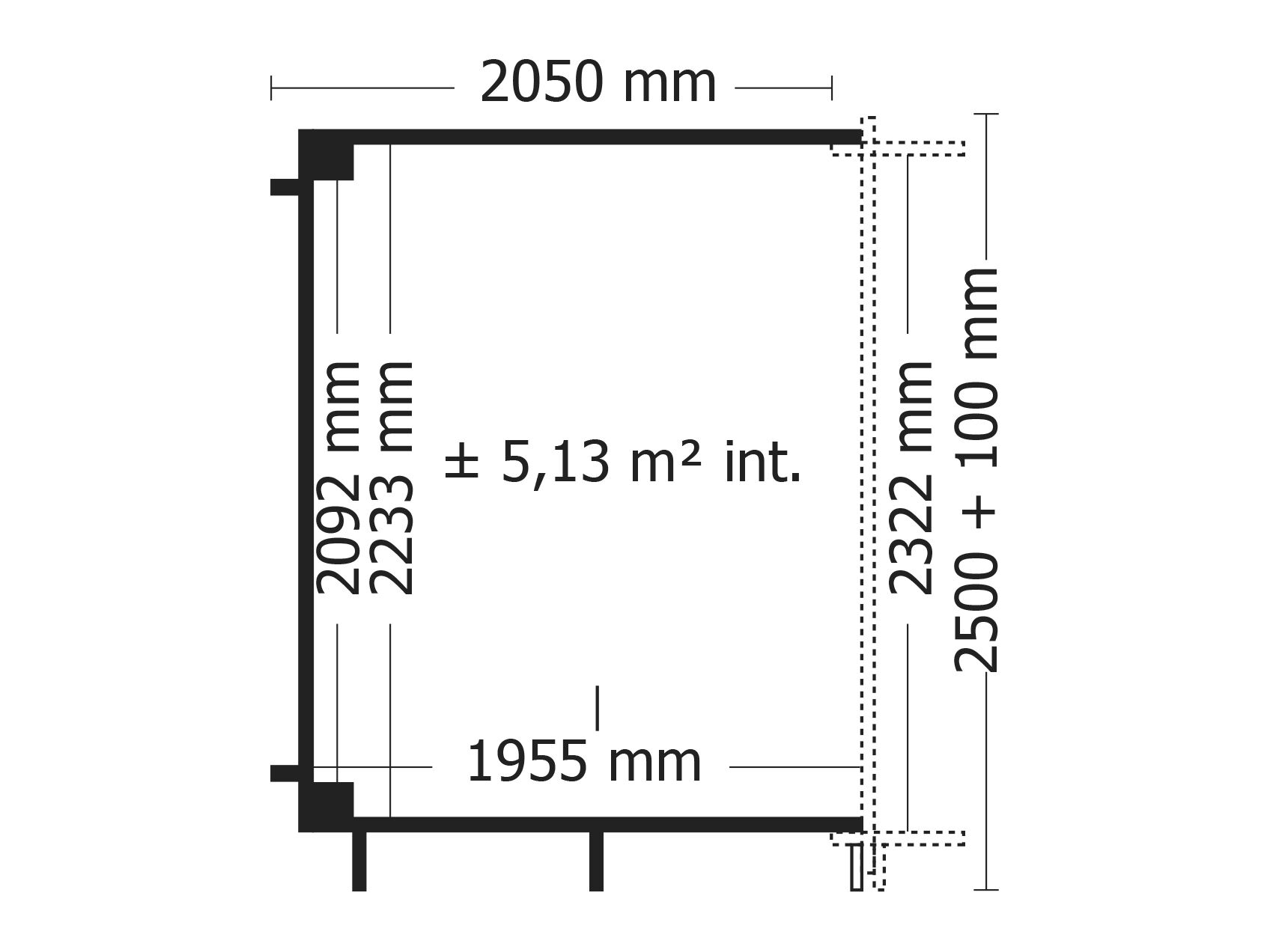Gerätehaus Modell Umea 7,38 m² + 200 cm Anbau