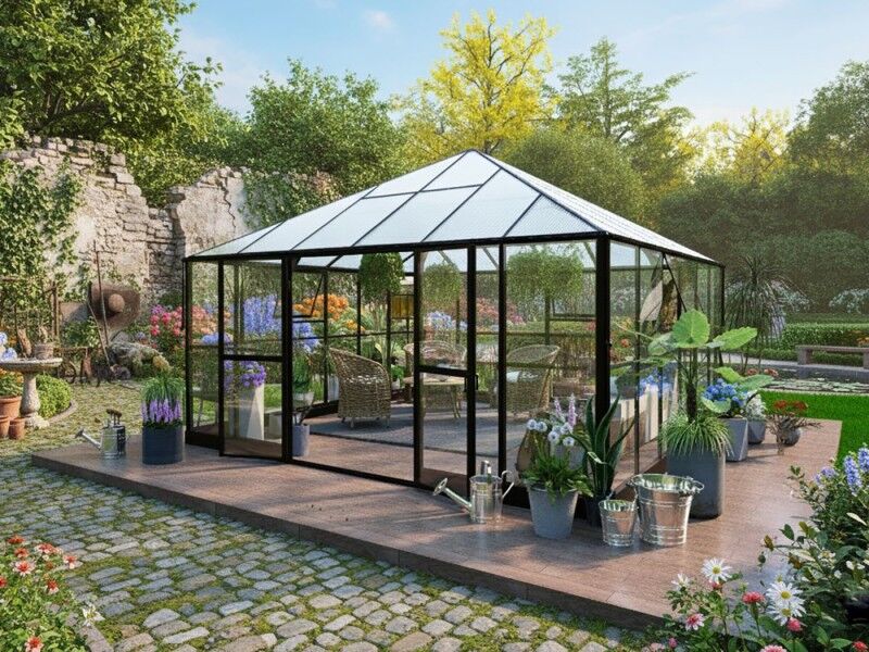 Das StarLine Gewächshaus Flora Lounge 17,72 m² ist die ideale Wahl für alle, die ihre Gartensaison verlängern, ihre Pflanzen schützen und ihrem Garten gleichzeitig einen stilvollen Akzent verleihen möchten. Investieren Sie in Qualität, Komfort und langanhaltende Freude am Gärtnern – mit der FloraLux Serie von StarLine Metall