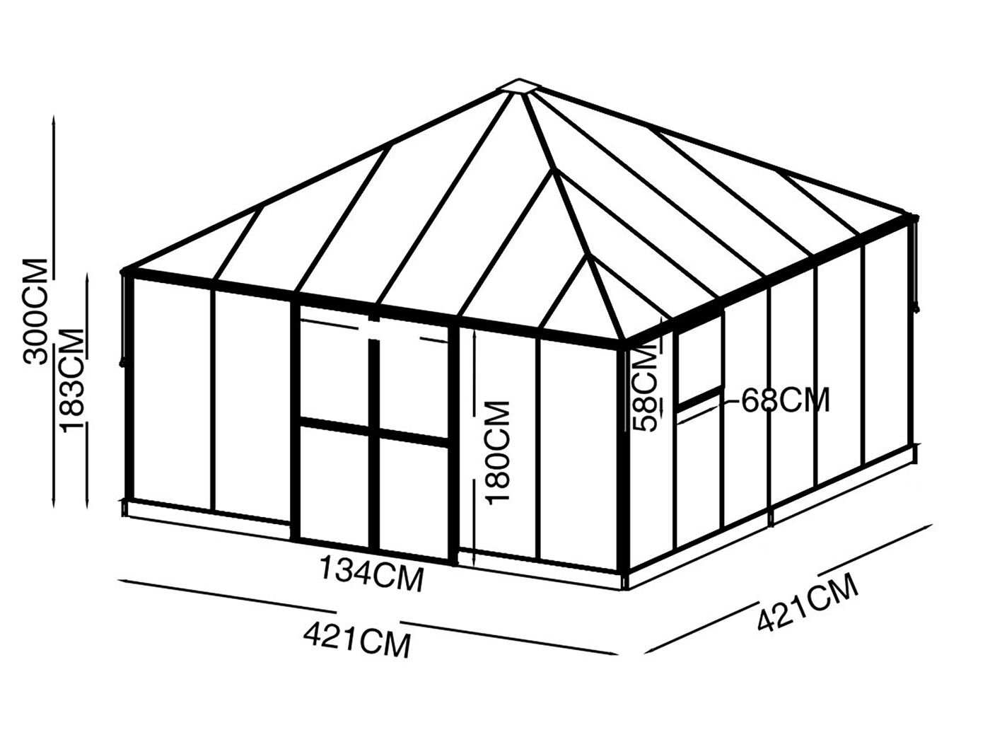 Mit einer Seiten- und Traufhöhe von 1,83 m genießen Sie beim Gärtnern eine angenehme Bewegungsfreiheit. Die große Doppeltür ermöglicht einen bequemen Zugang – auch mit Schubkarre oder Gießkanne. Für ein angenehmes Klima im Inneren sorgen zwei integrierte Fenster mit Aufsteller, die eine effektive Belüftung sicherstellen. Für den ebenerdigen und rechtwinkligen Aufbau des Gewächshauses ist ein 12 cm hoher Fundamentrahmen aus farbbeschichtetem Stahlblech im Lieferumfang enthalten.