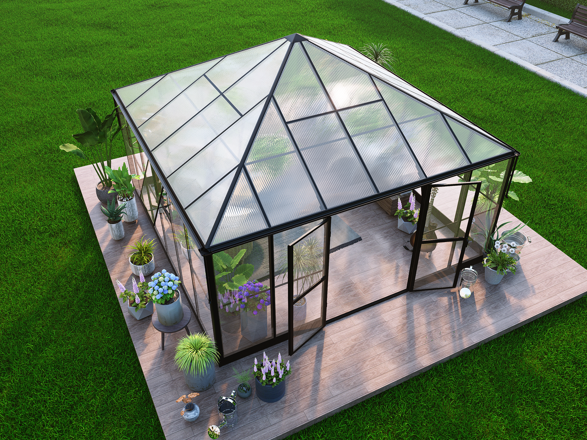 - Gewächshaus, Gartenzimmer und Pavillon in einem Produkt