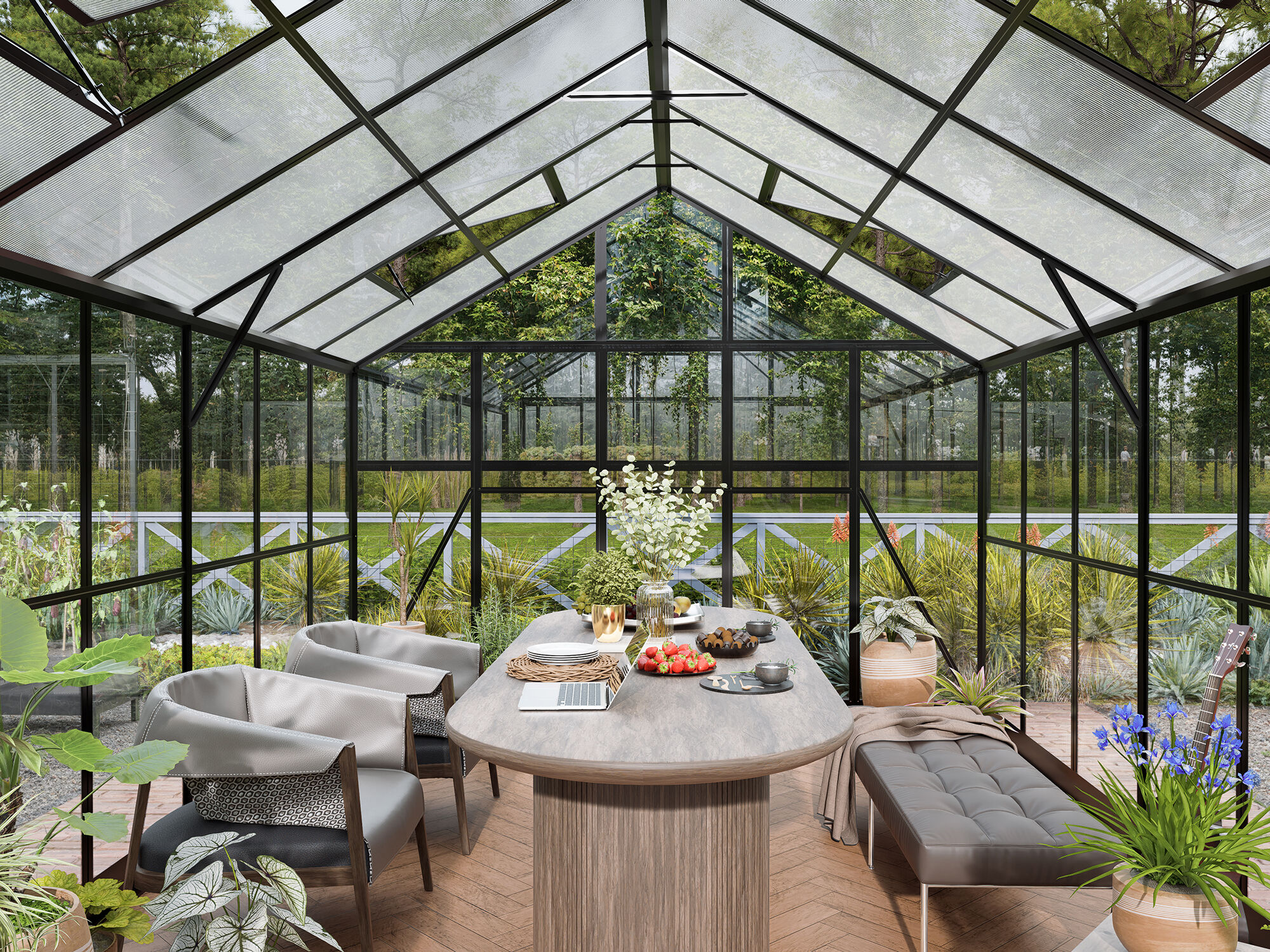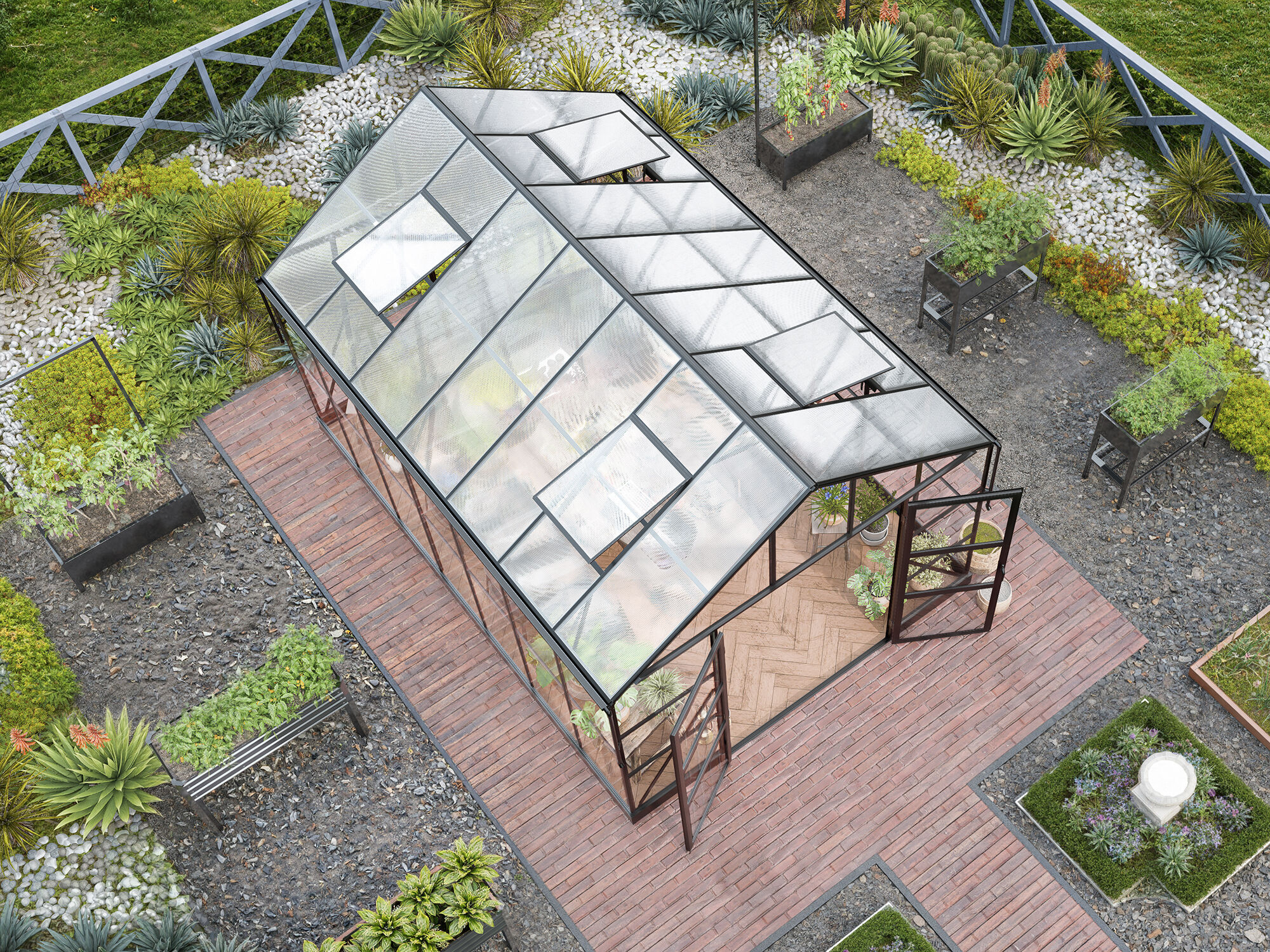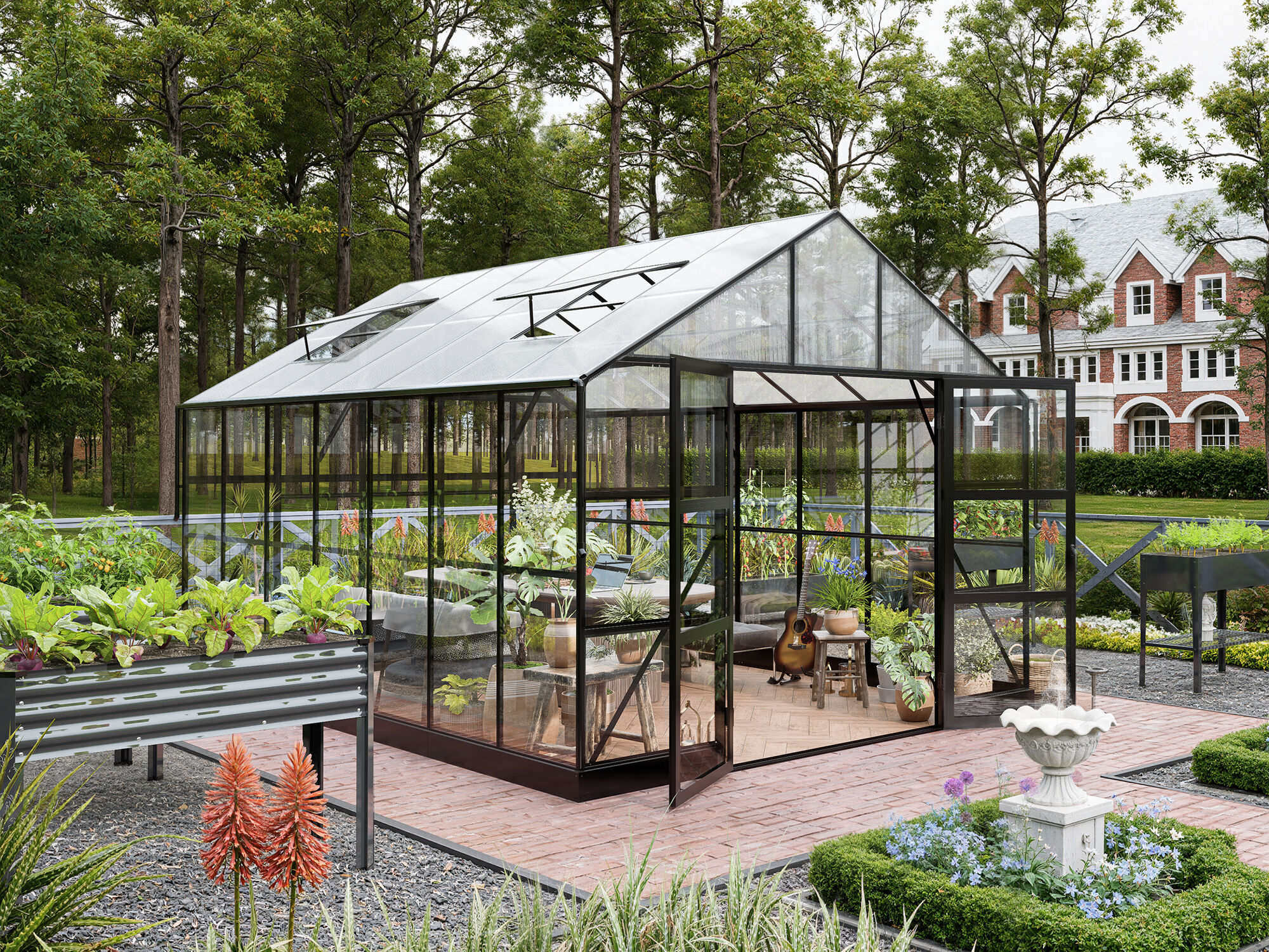 - Elegantes Gewächshaus mit Sicherheitsglas und Hohlkammerplatten