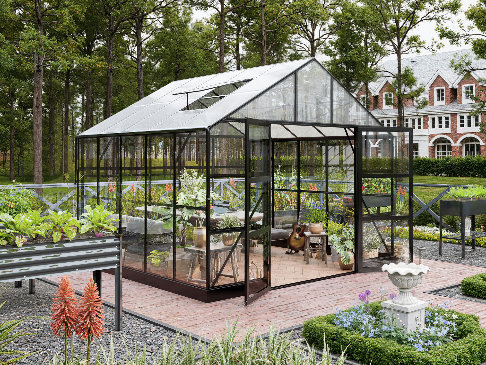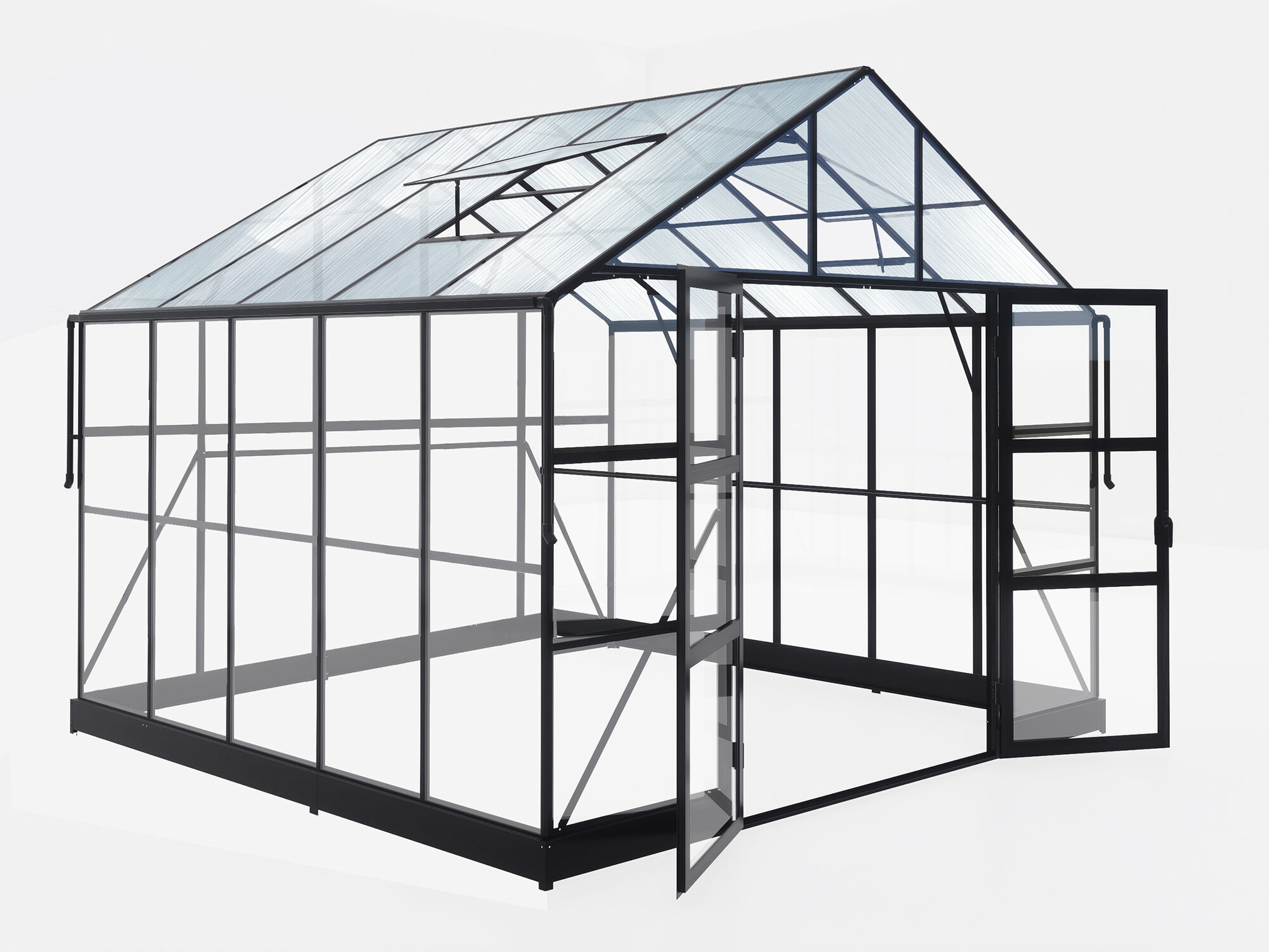 - Elegantes Gewächshaus mit Sicherheitsglas und Hohlkammerplatten
