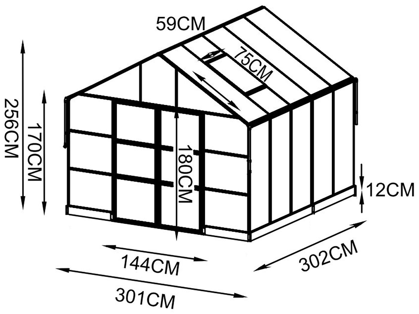 | Verglasung: | 6 mm Hohlkammerplatte, 4 mm ESG Sicherheitsglas |