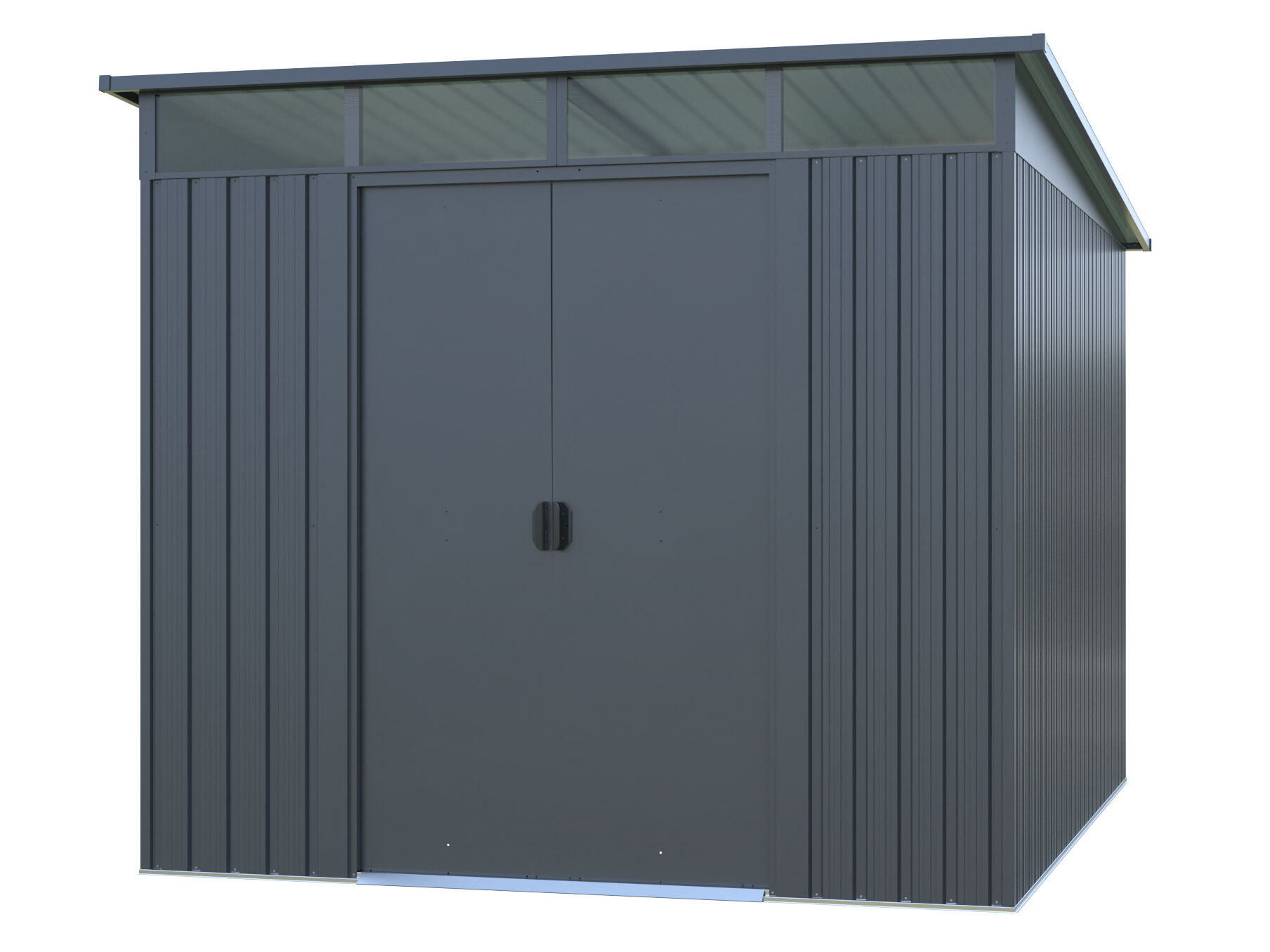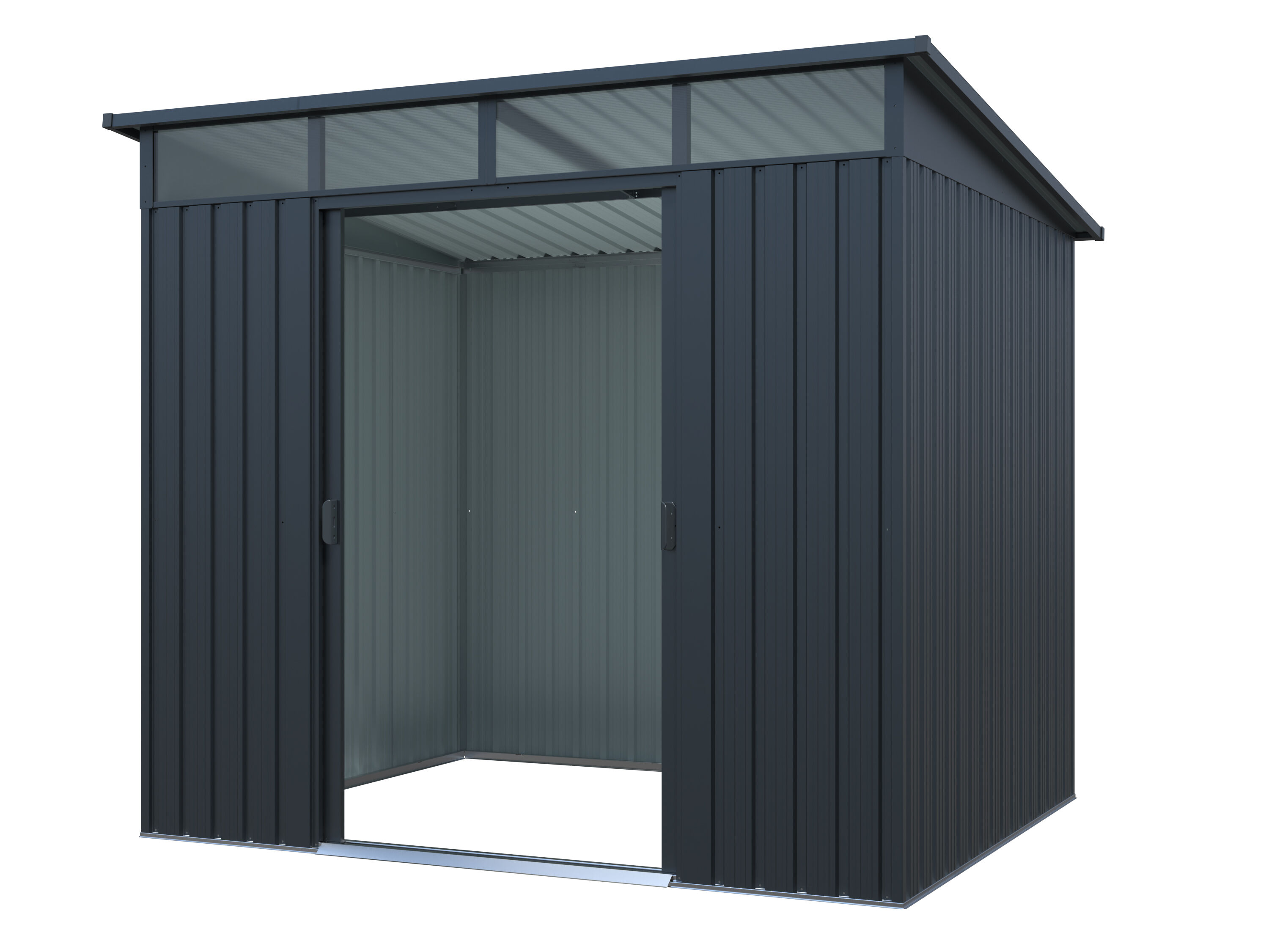 Sicherer & moderner Stauraum : Die Metall Gerätehaus Serie Lübeck ist mit einer leichtgängigen innenliegenden Doppelschiebetür ausgestattet, welche Ihnen einen einfachen Zutritt in das Innere des Gerätehauses ermöglicht. Die Griffe der Schiebetür haben eine Öffnung für ein Vorhängeschlos, mit dem Sie den Geräteschuppen verschließen können. Die moderne Pultdachbauweise und anthtrazitfarbene Lackierung verleihen dem Gerätehaus eine besonders moderne Optik.