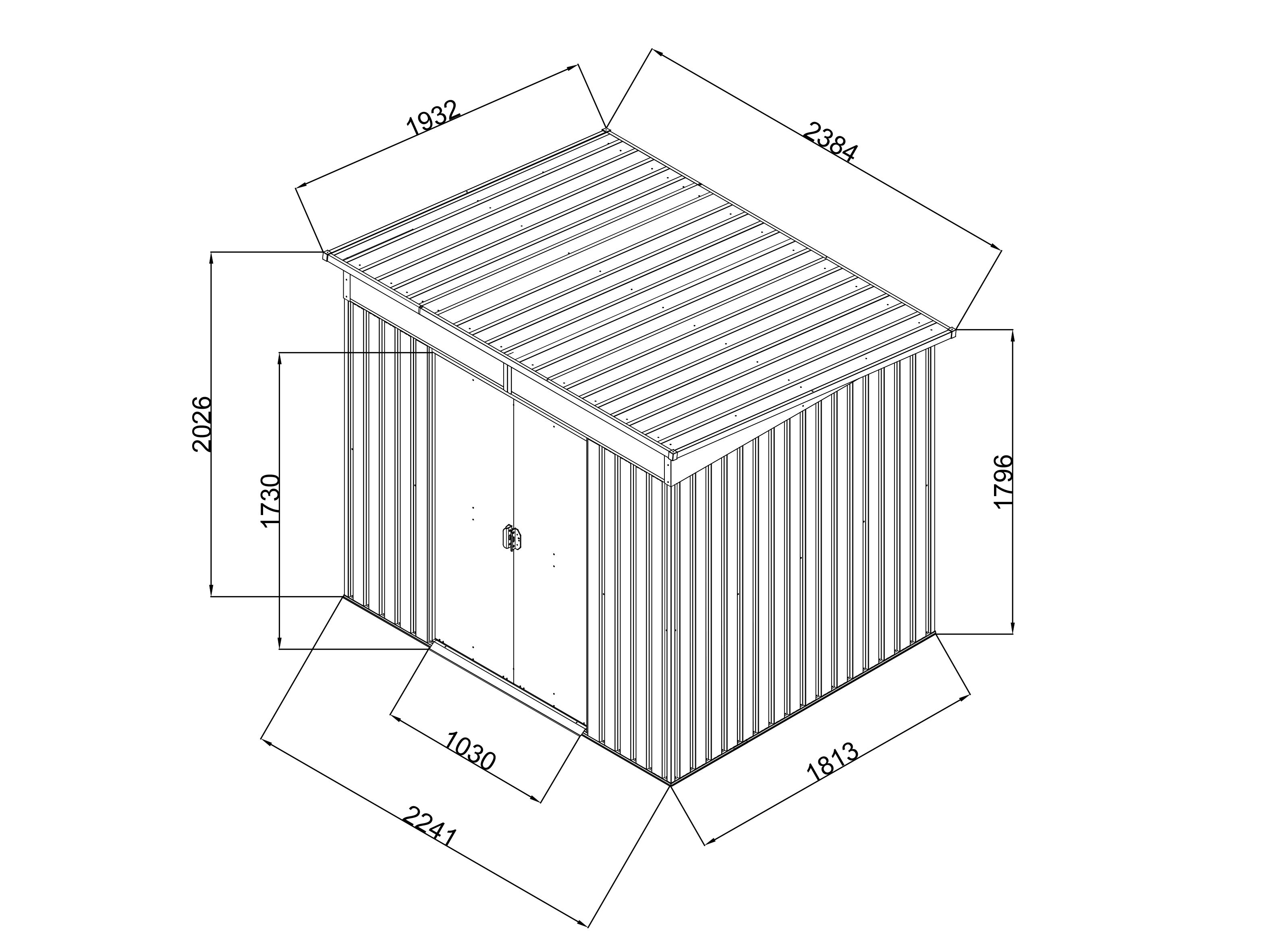 | Gesamtaußenmaße Dach: | 238,4 x 193,2 cm |