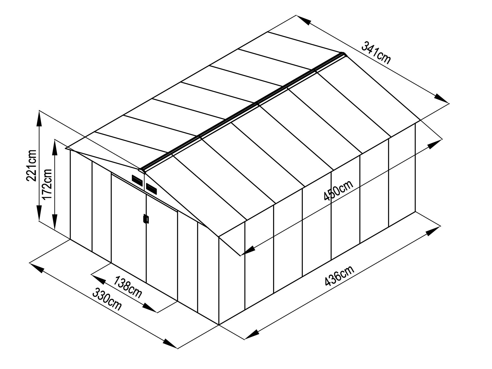 | Gesamtaußenmaße Dach: | 341 x 450 cm |