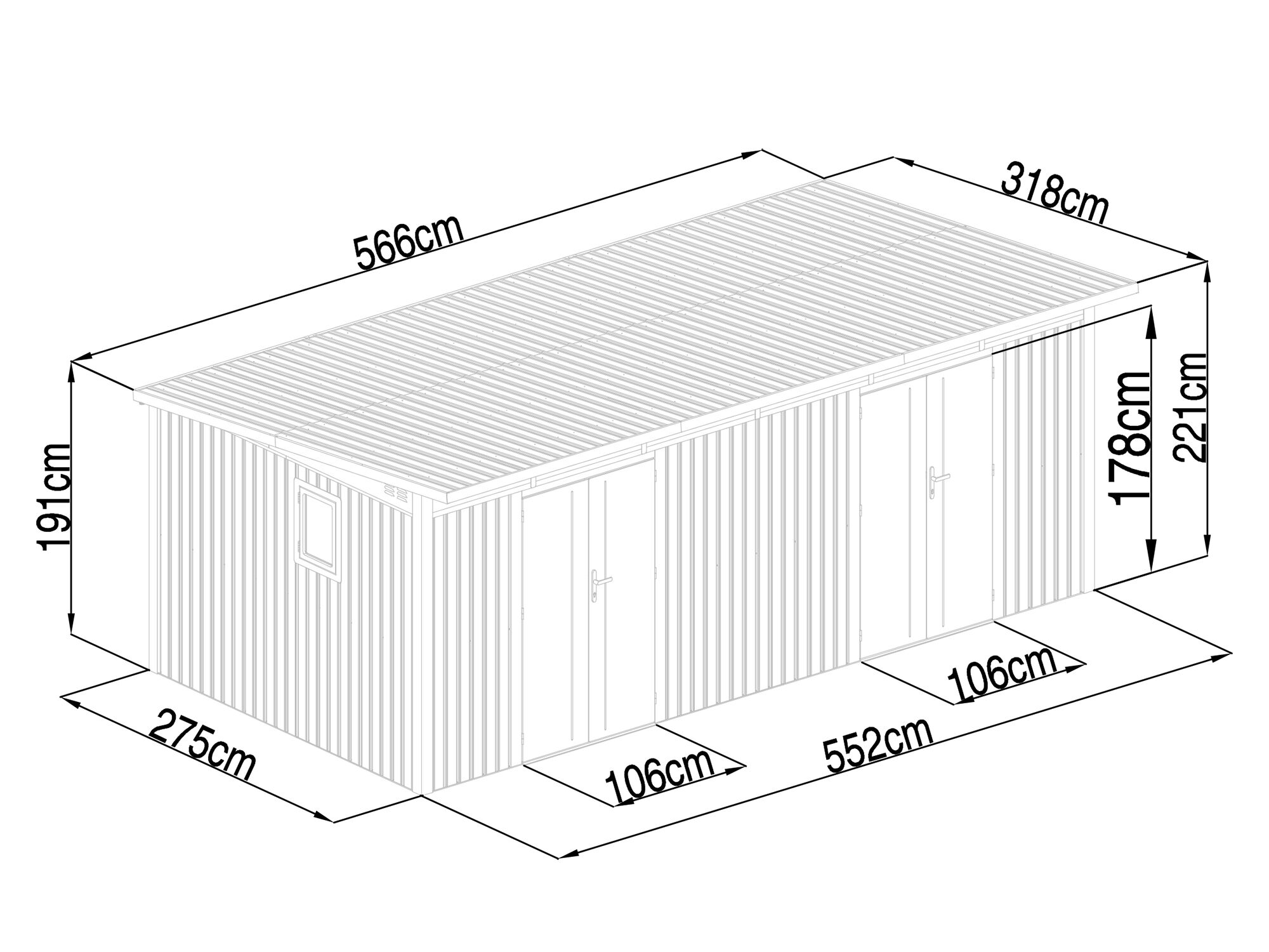 Metall Gerätehaus Modell Skylight 2-Raum 15,18 m²