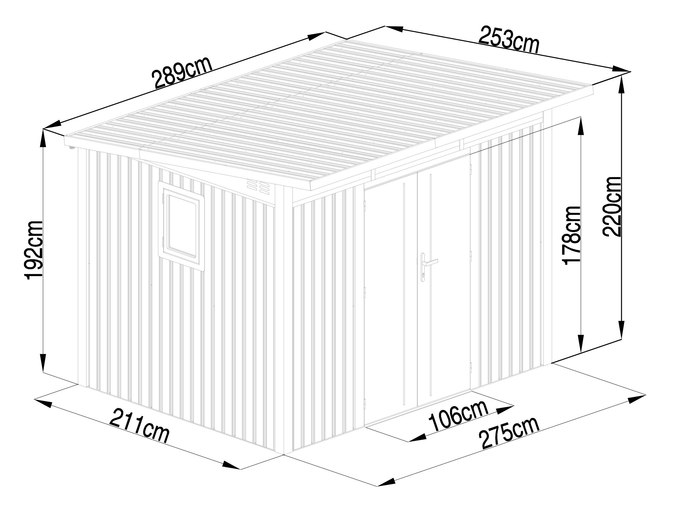 Metall Gerätehaus Modell Skylight 5,80 m² Anthrazit