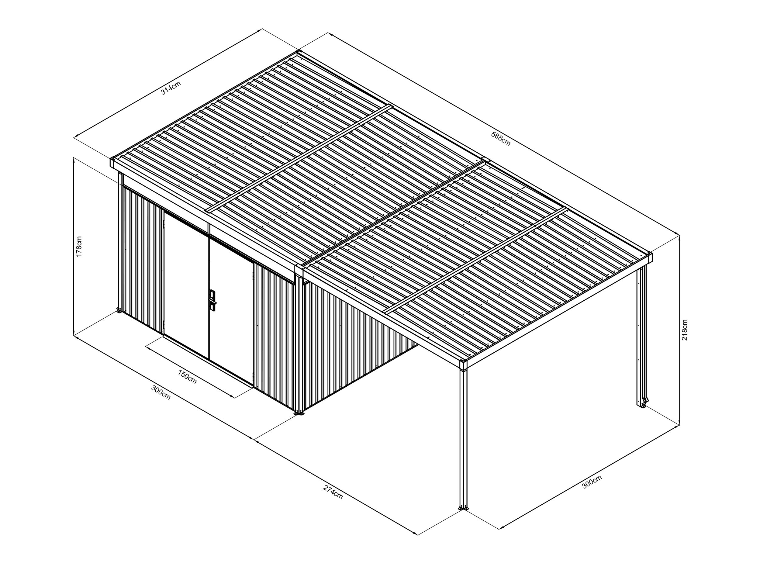 Bringen Sie Ordnung und Stil in Ihren Garten: Das StarLine Metall Gerätehaus Solidum überzeugt durch robuste Bauweise, moderne Optik und durchdachte Details. Mit seiner großzügigen Grundfläche von 3 x 3 m bietet es reichlich Platz für Fahrräder, Rasenmäher, Gartenmöbel und vieles mehr – perfekt, um Ihre Gartengeräte sicher und trocken zu verstauen. Das knapp 9 m² große zusätzliche Seitendach eignet sich perfekt für eine überdachte Sitzecke oder als zusätzlichen Stellplatz für Ihre Gartenutensilien.