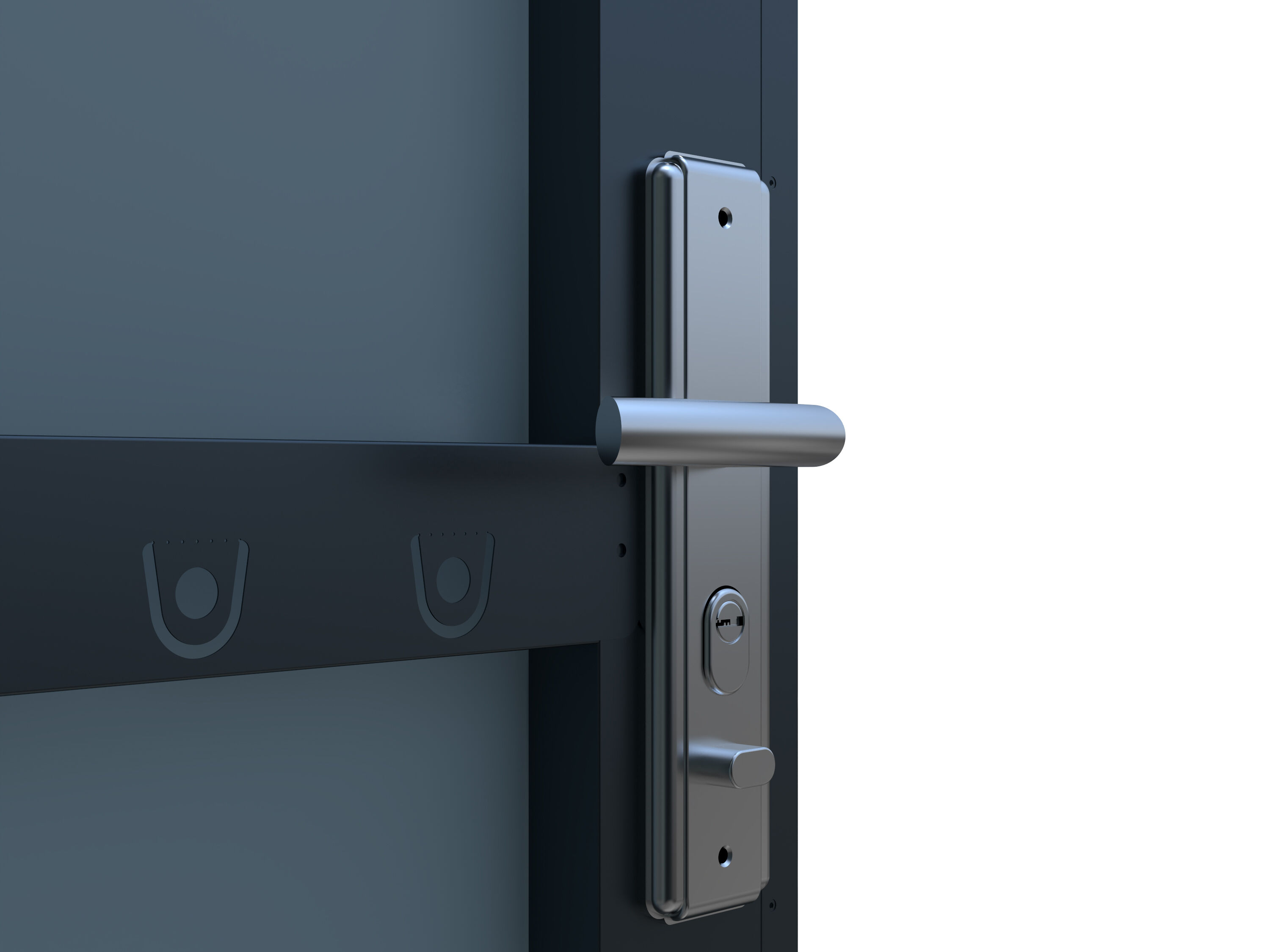 Hohe Sicherheit: Edelstahltürdrücker mit Profilzylinder und Sicherheitsschloss schützt Ihre Ausrüstung zuverlässig.
