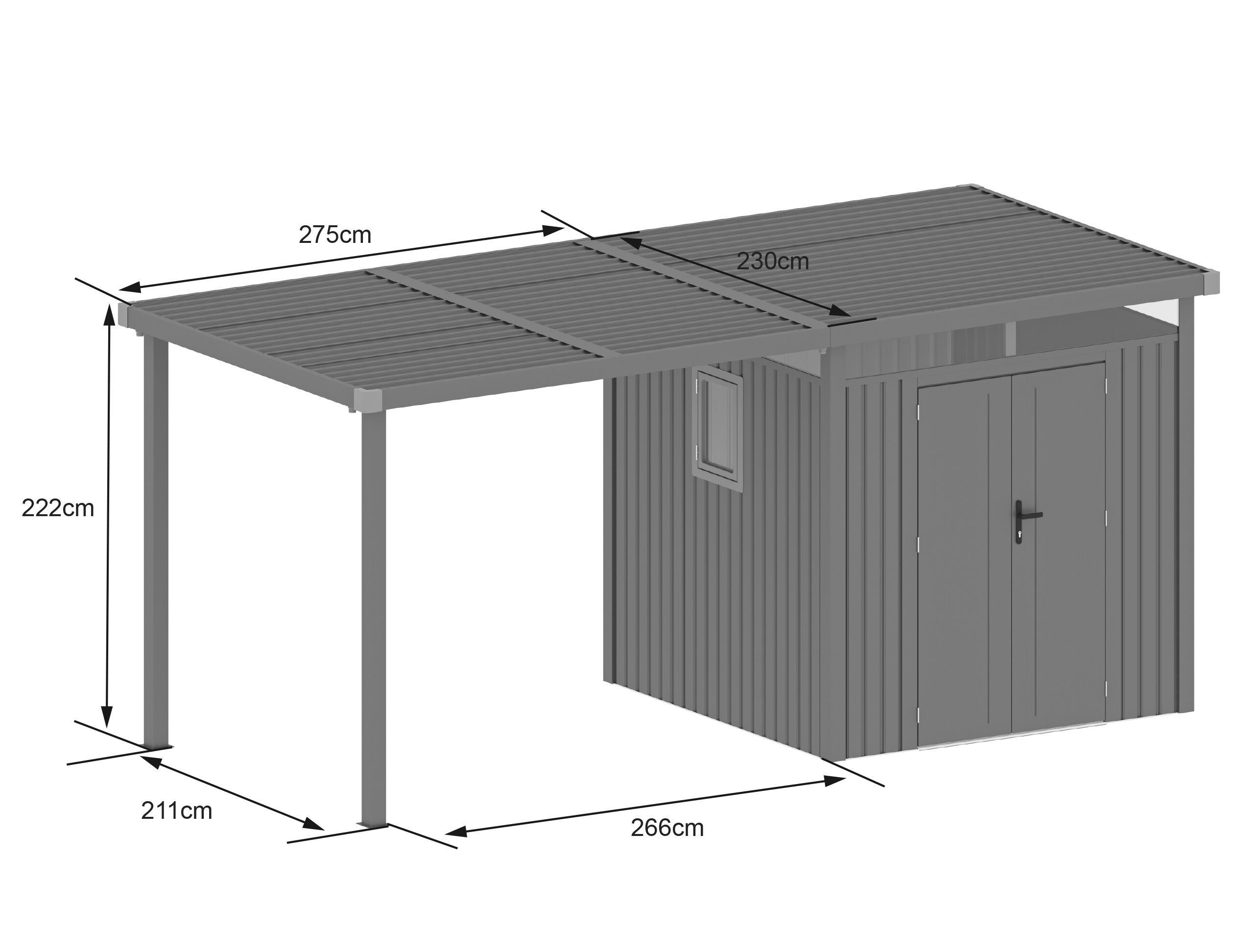 Metall Gerätehaus Modell Style 4,45 m² Spar-Set 3 Alu Grau