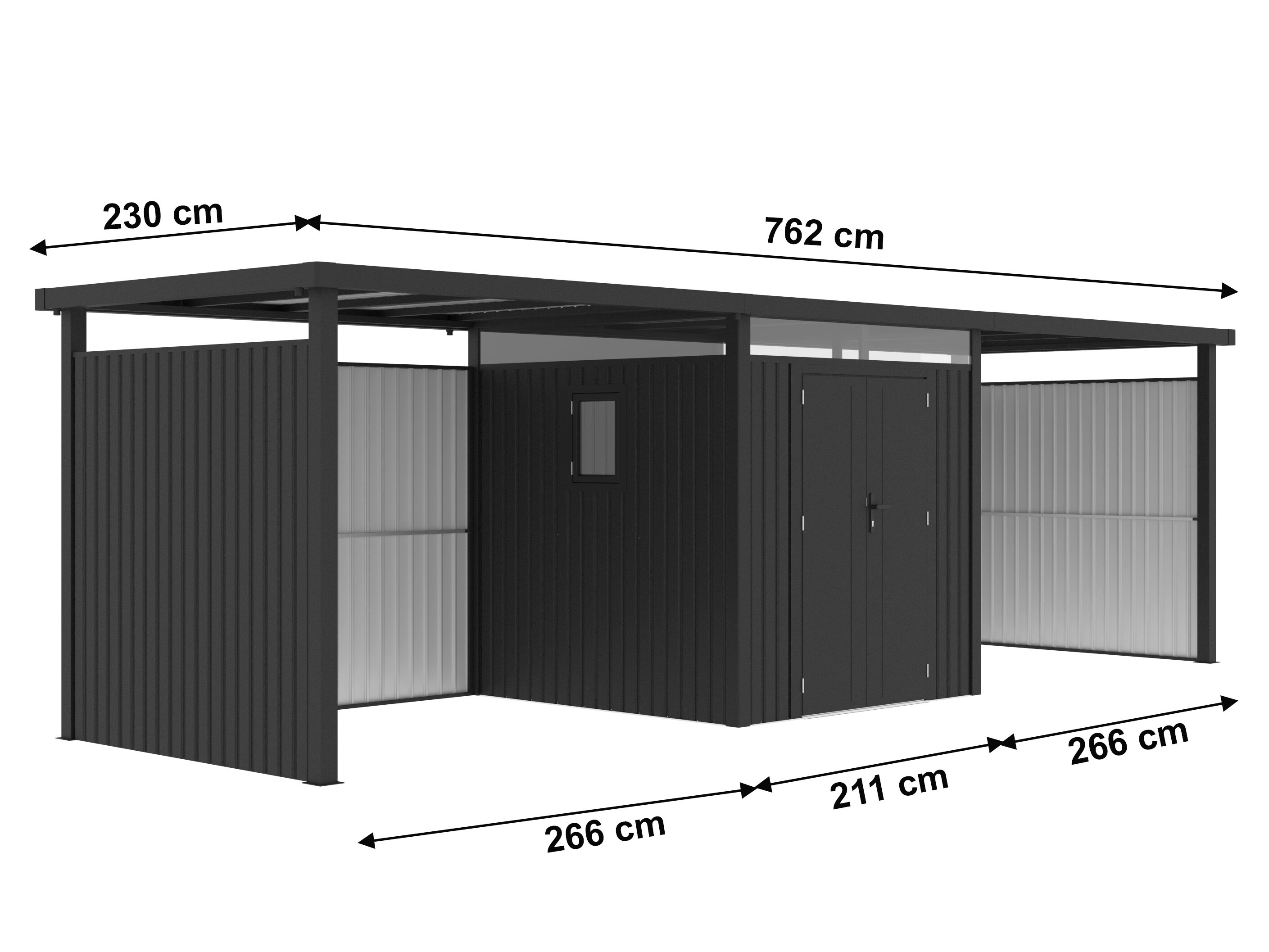 Metall Gerätehaus Modell Style 4,45 m² Spar-Set 4 Anthrazit