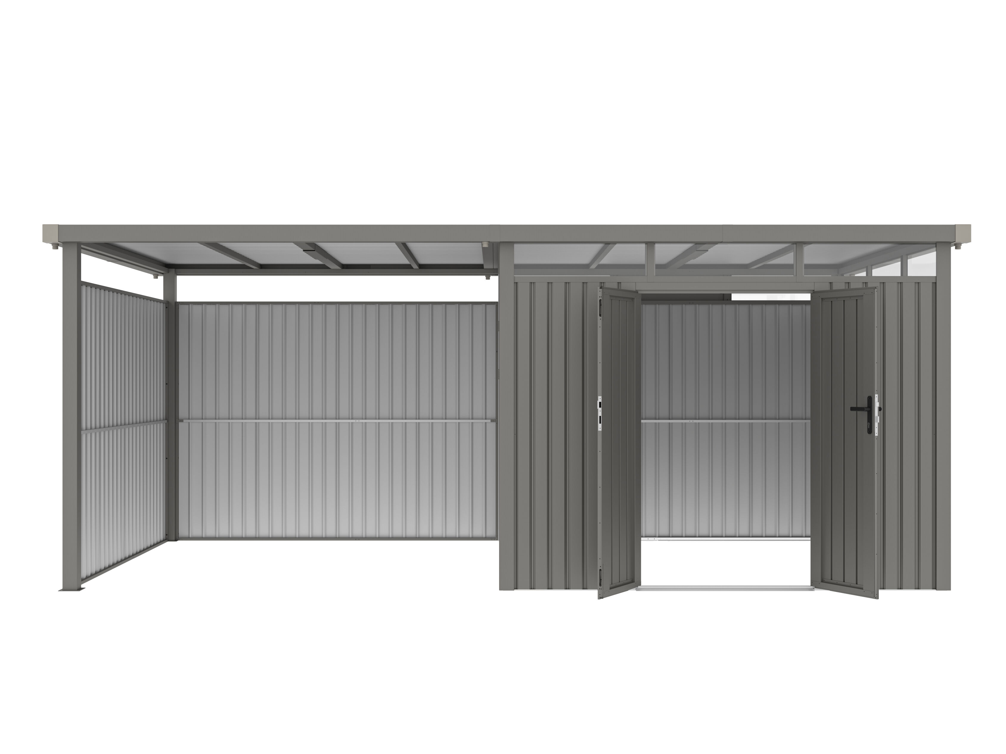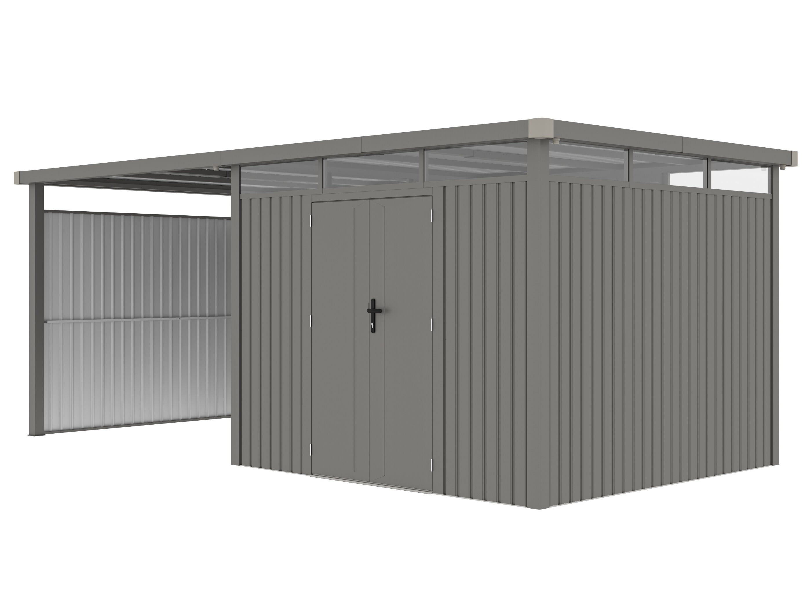 Metall Gerätehaus Modell Style 7,56 m² Spar-Set-2 Alu Grau