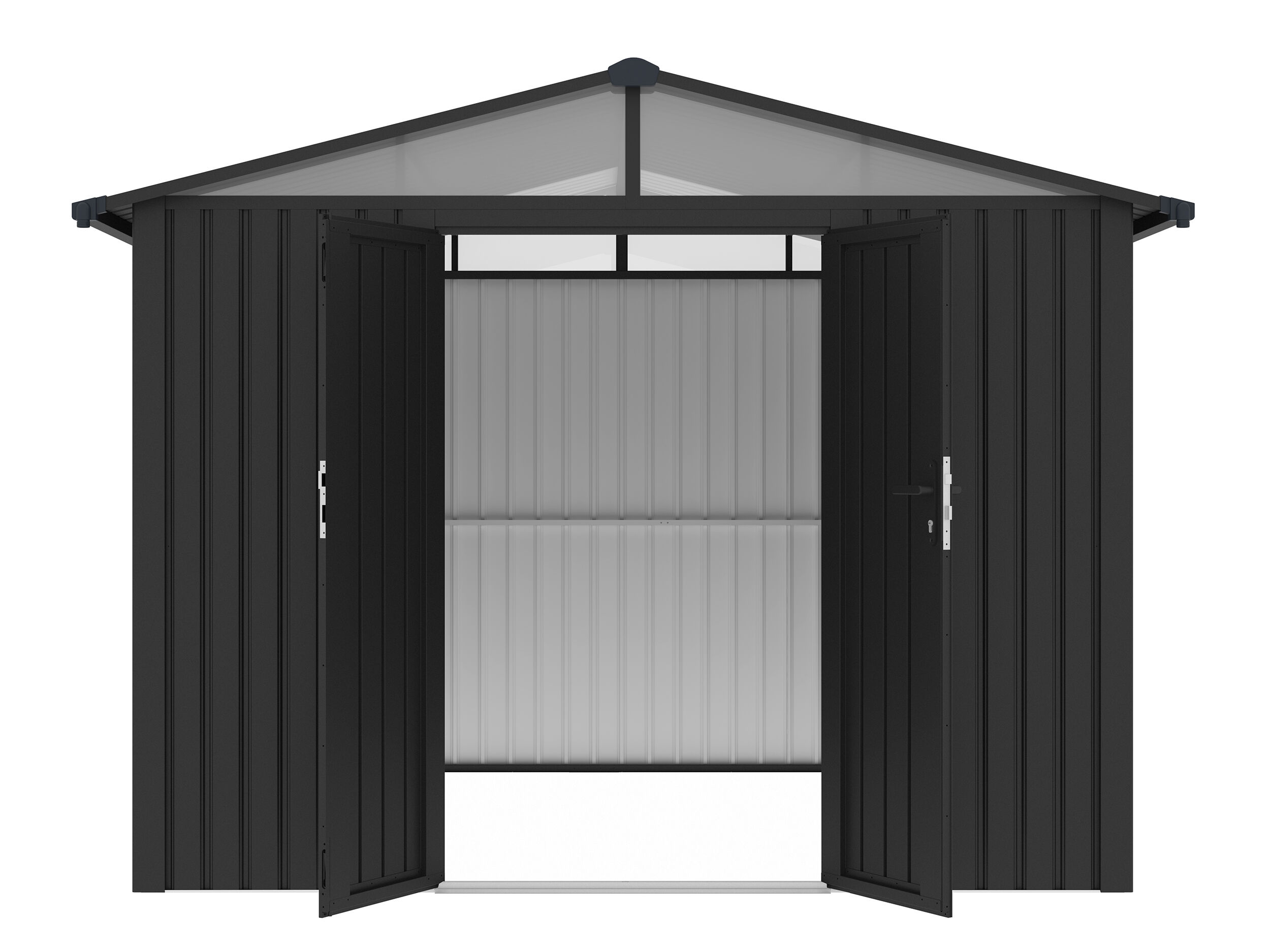 Funktional & Modern : Die Metall Gerätehaus Serie Skylight verfügt über ein großes Oberlichtfenster , welches eine Menge natürliches Tageslicht in das Innere des Gartenhauses bringt. Durch das praktische Oberlichtfenster verliert man im Inneren des Gartenhauses keine Stellfläche und hat eine Menge Platz für Gartenutensilien. Gleichzeitig verleiht das Oberlichtfenster dem gesamten Gartenhaus ein modernes und extravagantes Erscheinungsbild.