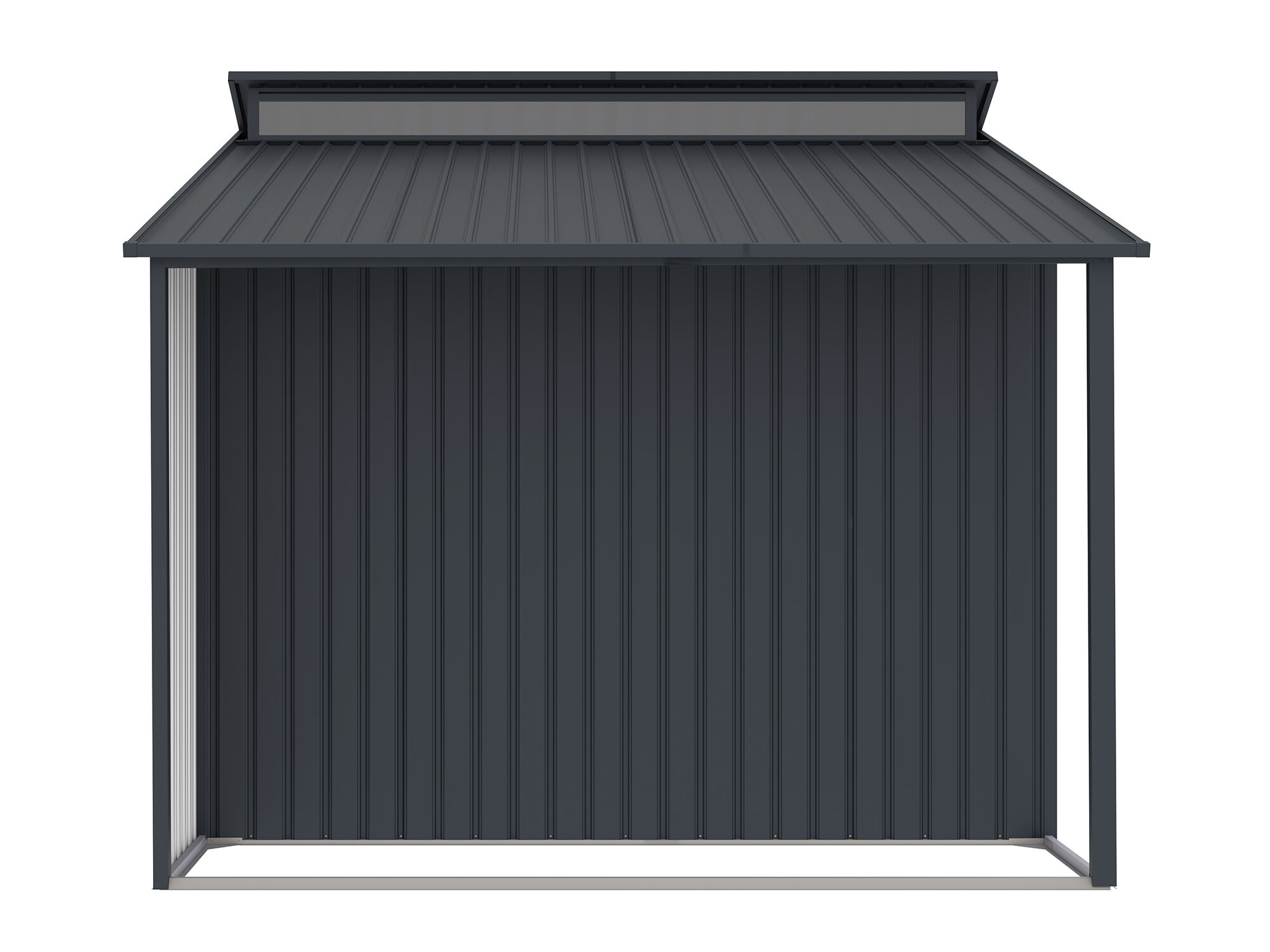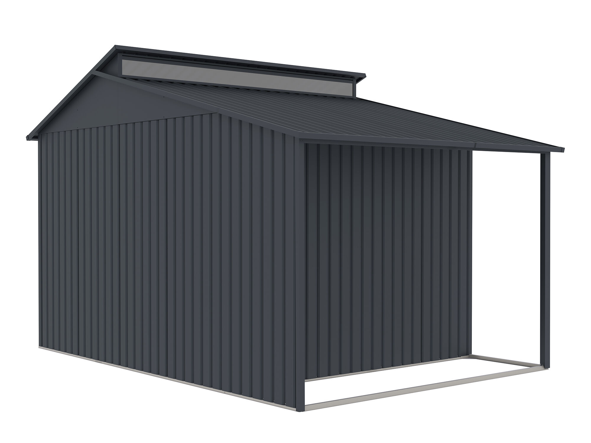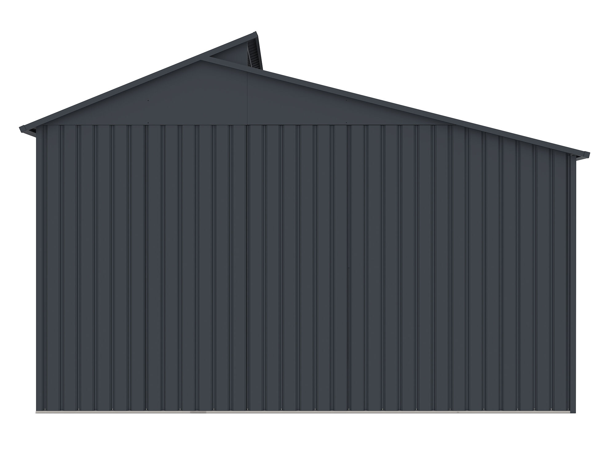 Das StarLine Metall Gerätehaus Modell Viva Varianta bietet mit seiner Grundfläche von 9,12 m² eine stillvolle und langlebige Lagerlösung für Ihren Garten. Das moderne versetzte Pultdach inkl. Lichtband verleiht dem Gartenhaus eine sehr moderne Optik. Das Gerätehaus der Marke StarLine Metall ist aus feuerverzinktem Stahlblech und einer besonders dicken kratzfesten Pulverbeschichtung hergestellt, welches Ihnen Langlebigkeit und Wetterfestigkeit garantiert. Das Gerätehaus verfügt über eine Schiebetür für einen leichten Zugang und ist mit geeigneten Türgriffen für ein Vorhängeschloss ausgestattet, mit dem Sie den Schuppen verschließen und sichern können. Das seitliche überdachte Schleppdach bietet zusätzlichen Stauraum für z.B. Feuerholz oder andere Gartenutensilien. Dieses elegante, wartungsfreie Gerätehaus ist nicht nur eine praktische Ergänzung für Ihren Außenbereich, sondern auch ein echter Hingucker in Ihrem Garten.