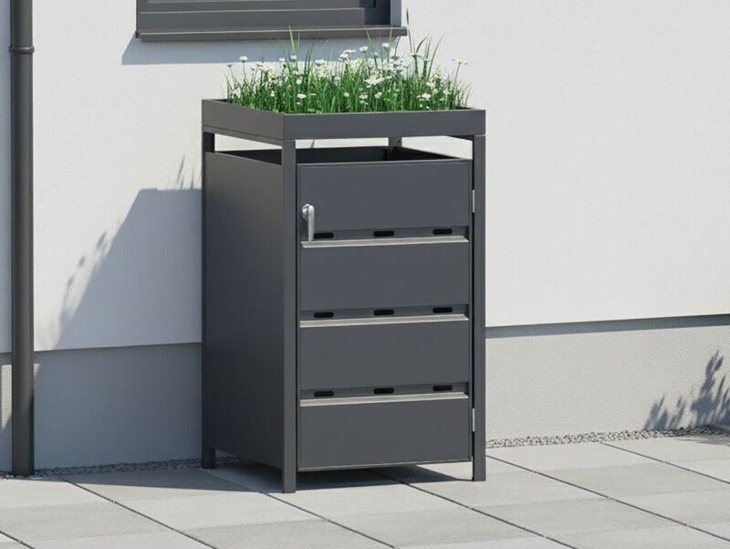 Jetzt unsere Metall-Mülltonnenboxen mit Pflanzdach entdecken