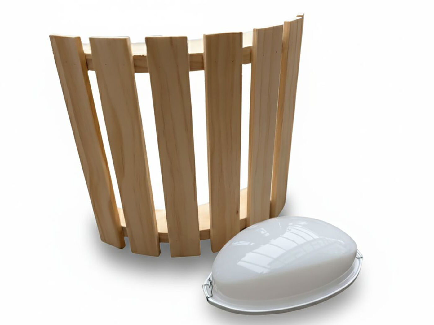 Die Saunaleuchte Lumo wurde genau für diesen Zweck entwickelt. Ihr stilvoller Lampenschirm aus massivem Holz sorgt für ein natürliches, weiches Licht. Durch die feinen Zwischenräume der Holzstäbe dringt das Licht sanft in den Raum und taucht die Sauna in eine gemütliche, entspannende Atmosphäre.