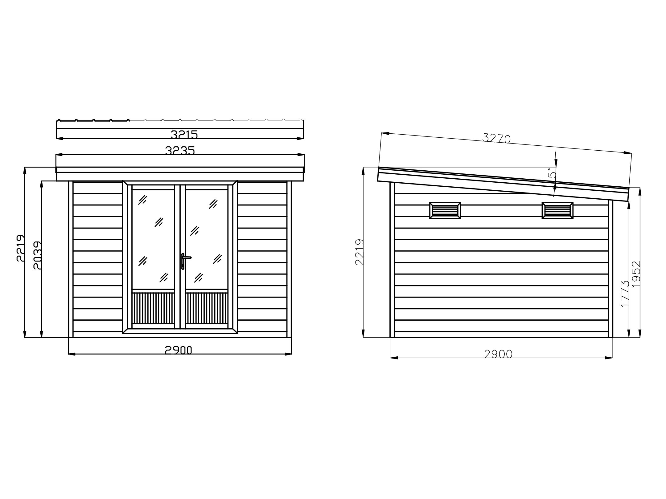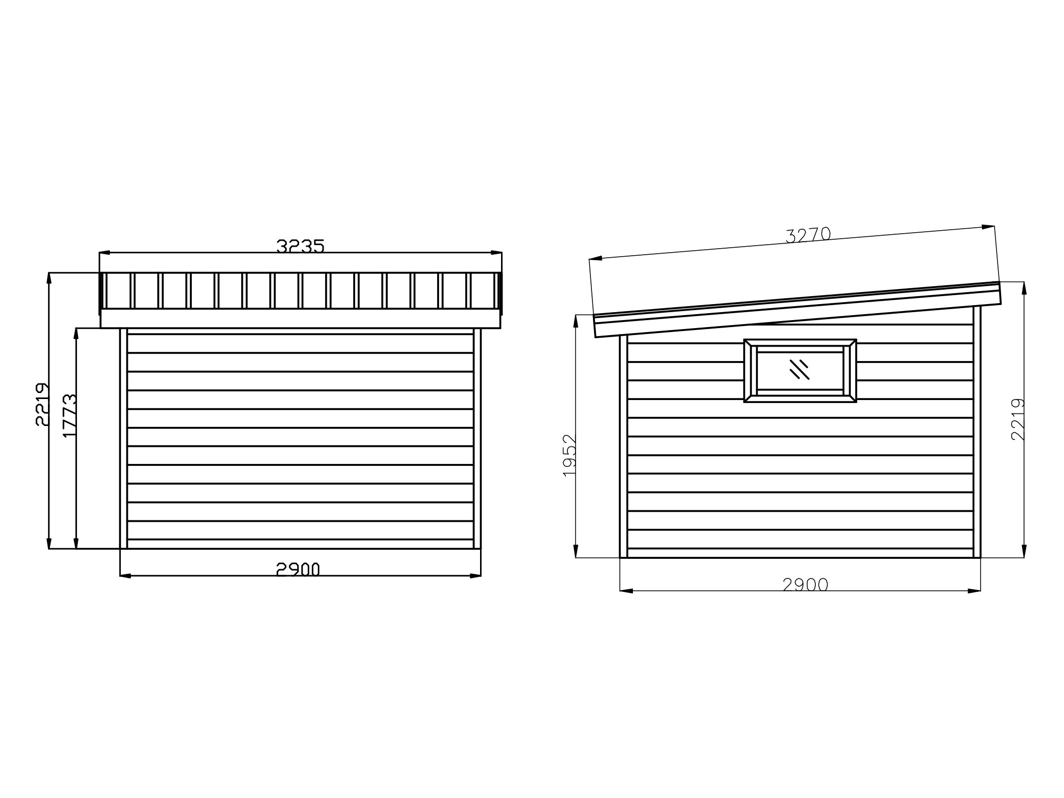 | Gesamtaußenmaße Dach: | 323,5 x 327 cm |